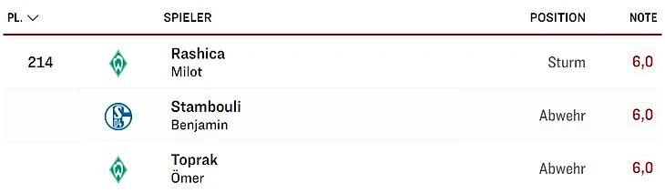 *игрок – позиция – кол-во игр – кол-во оцененных игр – оценка