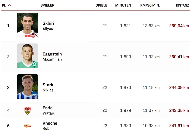*игрок – кол-во игр – кол-во минут – в среднем км за 90 мин – всего км