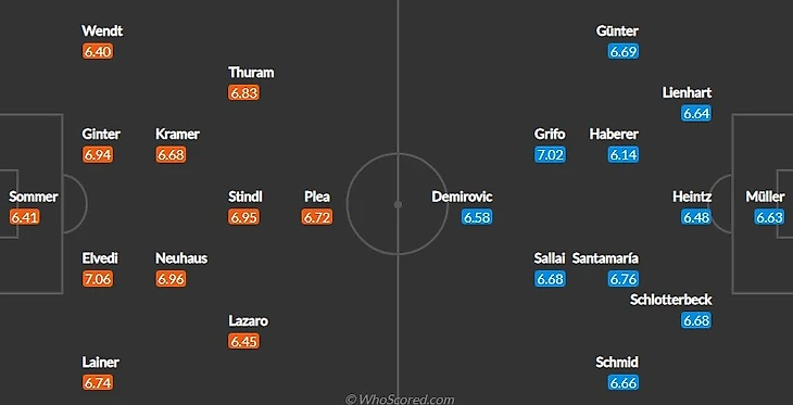 Сейчас "Боруссия" идёт на 10-м месте, а "Фрайбург" - на 8-м. Во время их встречи в первом круге "Боруссия" шла седьмой, а "Фрайбург" - 14-м.