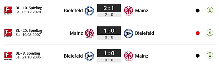 "Билефельд" набрал 12 из 15 возможных очков против четырех последних команд в Бундеслиге этого сезона. "Майнц" не выигрывал ни одного матча с такими соперниками.