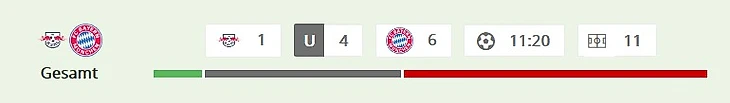 Это будет 10-я встреча "Лейпцига" и "Баварии" в Бундеслиге. Шесть из девяти предыдущих были между командами, находящимися на двух верхних местах в таблице.
