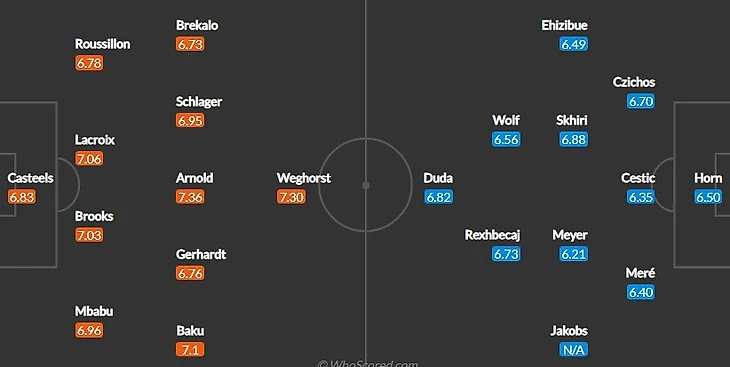 Вегхорст забил свой 50-й гол в Бундеслиге в 92-м матче перед международным перерывом. Он является четвертым игроком, достигшим этой отметки в "Вольфсбурге" после Эдина Джеко (66), Графите (59) и Диего Климовича (57).