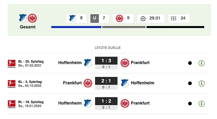 На протяжение последних восьми игры «Хоффенхайм» не может обыграть «орлов». Они проиграли последние шесть встреч;