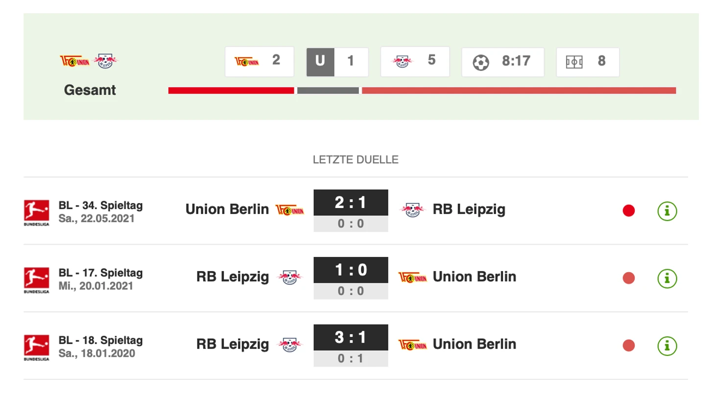 «РБ Лейпциг» — одна из пяти команд, которые все еще не смогли одержать победу на выезде (3 ничьи, 3 поражения). Они так же проиграли последние три выездные игры в сезоне 2020/21, который закончили поражением 2:1 от «Униона».