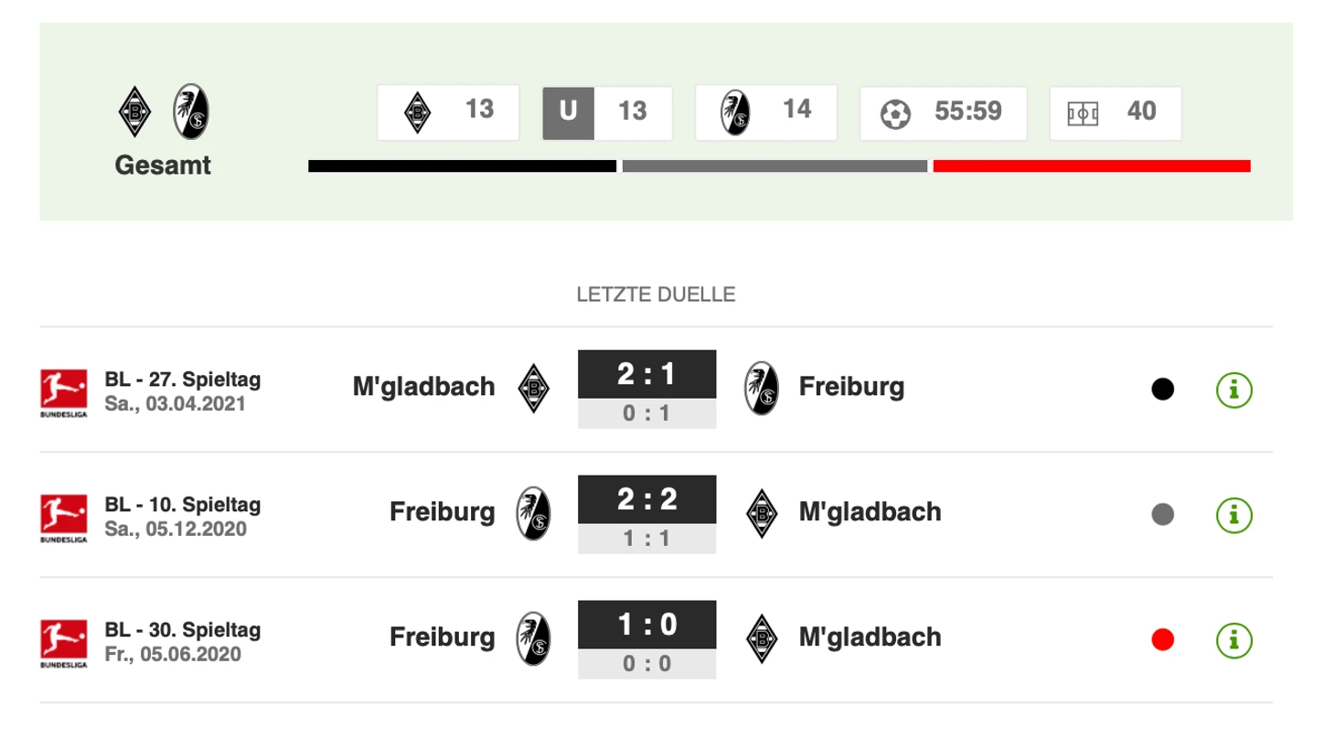 Тем не менее, «Фрайбург» не выигрывает в Менхенгладбахе с мая 2008 года (4 ничьи, 7 поражений).