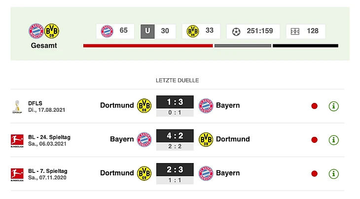 С тех пор «Бавария» пять раз подряд одержала победу в Классикере, а за последние десять игр между командами проиграла лишь дважды. В общем, «рекордмайстер» в этом противостоянии ведет по привычке разгромно — 51 победа против 26 у Дортмунда;