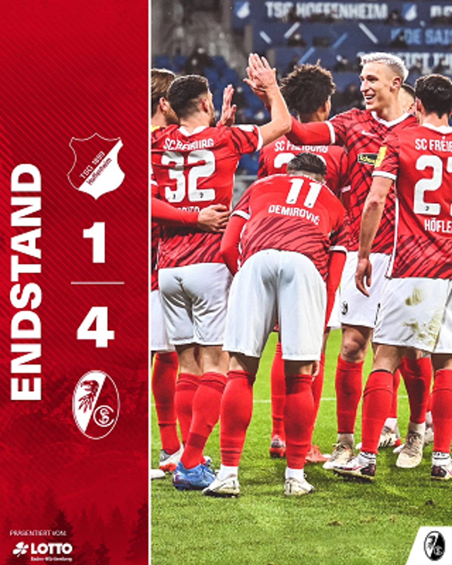 Как и ожидалось, встреча вышла насыщенной, стоящей ночных «посиделок». «Фрайбург» уверенно зашагал в следующую стадию Кубка Германии, оставив после себя разгромленный «Хоффенхайм», который уже в субботу ждет злую «Боруссию Д».