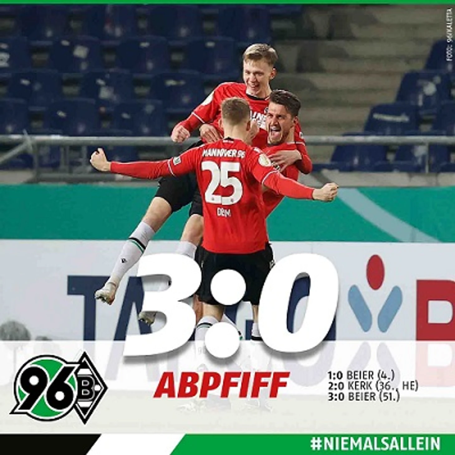 Беды «Боруссии» в защите и желание «Ганновера» сделать ставку на Кубок переплелись уже на четвертой минуте. Несогласованность в действиях защитников и блестящий пас Вейдандта привели к голу 19-летнего Максимилиана Байера. Макс, к слову, отличился и на предыдущей стадии турнира, отгрузив дубль дюссельдорфской «Фортуне». Шанс сравнять счет у «Боруссии» вскоре появился, однако Нойхаус не смог пробить Рона-Роберта Цилера.