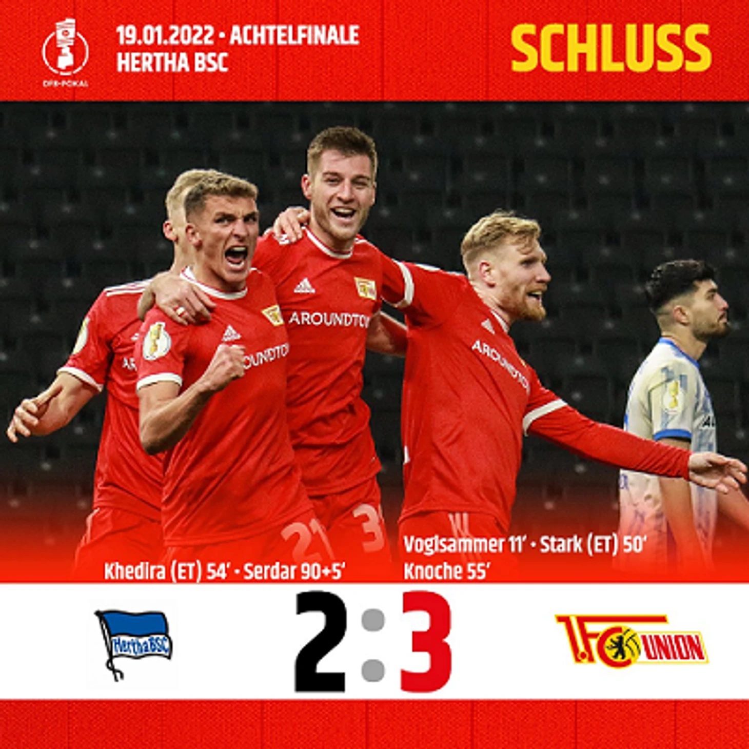 Берлинское дерби удалось на славу - как с точки зрения нейтрального болельщика, так и для фанатов «Униона». Не слишком с этим согласны могут быть те, кто поддерживал «Герту», но с точки зрения атаки команда Тайфуна Коркута смотрелась достойно. Однако начиналось все для «Старой дамы» не так оптимистично. Уже на первой минуте вратарь Александер Шволов дважды был вынужден вступать в игру - сперва после удара Макса Крузе, затем в створ бил Фогльзаммер. В стартовом порыве удалось не пропустить, но радость от спасений 29-летнего кипера оказалась недолгой. Еще до истечения четверти часа всё тот же Фогльзаммер счет открыл, умудрившись нанести удар в прыжке после навеса от Крузе. Для Андреаса, учитывая его игровое время, это крайне важный мяч. Перешедший летом из «Арминии» форвард два с половиной месяца не выходил в старте. До прошлой недели, когда сыграл с «Хоффенхаймом» и тоже забил. Удивительно (по такой игре), но до перерыва голов больше не было. Хотя благодарить за это стоит систему VAR. Сперва уже назначенный пенальти (Никлас Штарк сыграл рукой после удара Фогльзаммера) отменили из-за офсайда, а затем правило вне игры «зарубило» гол Суата Сердара - 0:1 при убедительном преимуществе «Униона». Сразу после перерыва игра взорвалась - три мяча за шесть минут, в двух случаях это были автоголы. Уже упомянутый Штарк неловко прервал прострел Озтунали на Фогльзаммера. После чего уже Рани Хедира неудачно подправил пас вдоль ворот неугомонного Сердара - 1:2. Увы, но к сожалению для «Герты», спустя минуту разница в два мяча была восстановлена. Забытый в чужой штрафной Робин Кнохе замкнул навес со стандарта - 1:3. А уже в самой концовке все тот же Суат Сердар таки записал свое имя на табло. Выбивая мяч с ленточки, Кевин Беренс попал им в грудь полузащитника, от которой тот и залетел в ворота. Итоговый счет - 2:3. В целом во втором тайме «Герта» была перспективна (11:3 по ударам), но нехватка точности, провалы до перерыва и ошибки в защите не позволили хозяевам выйти в четвертьфинал Кубка. Дальше идет «Унион».