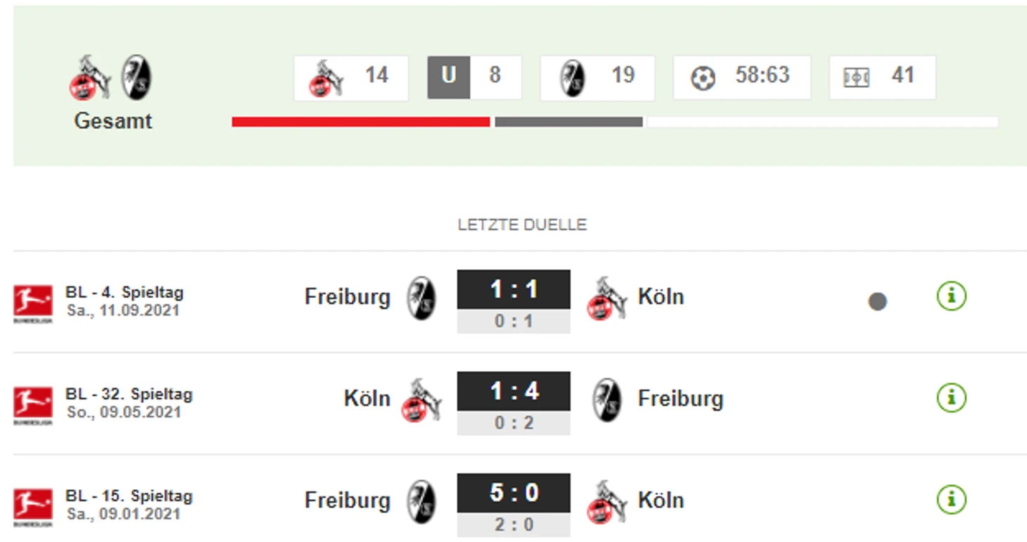 Команды лидирует в лиге по числу голов головой (у "Кёльна" - 12, у "Фрайбурга" - 11)