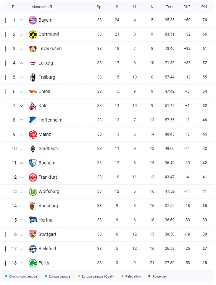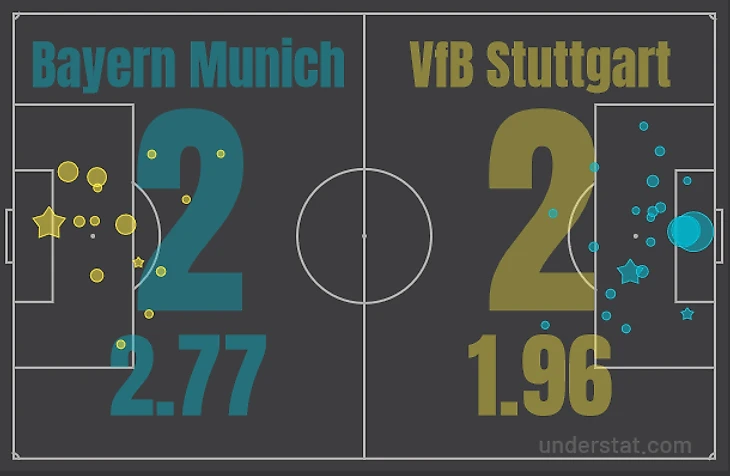 «Штутгарт» достаточно неожиданно увез с «Альянц-Арены» одно очко. Судя по всему, Юлиан Нагельсманн не смог настроить футболистов на встречу, где мотивации нет. После окончания встречи команде при любом раскладе вручили чемпионский трофей – 10-й сезон подряд. Гости наоборот бились отчаянно, так как от исхода встречи зависело какая судьба их ждет на будущий сезон. В итоге «швабы» смогли сохранить шансы на стыковые матчи. Для этого в заключительном туре им необходимо не проиграть дома «Кёльну» или рассчитывать, что «Арминия» не обыграет «РБ Лейпциг».