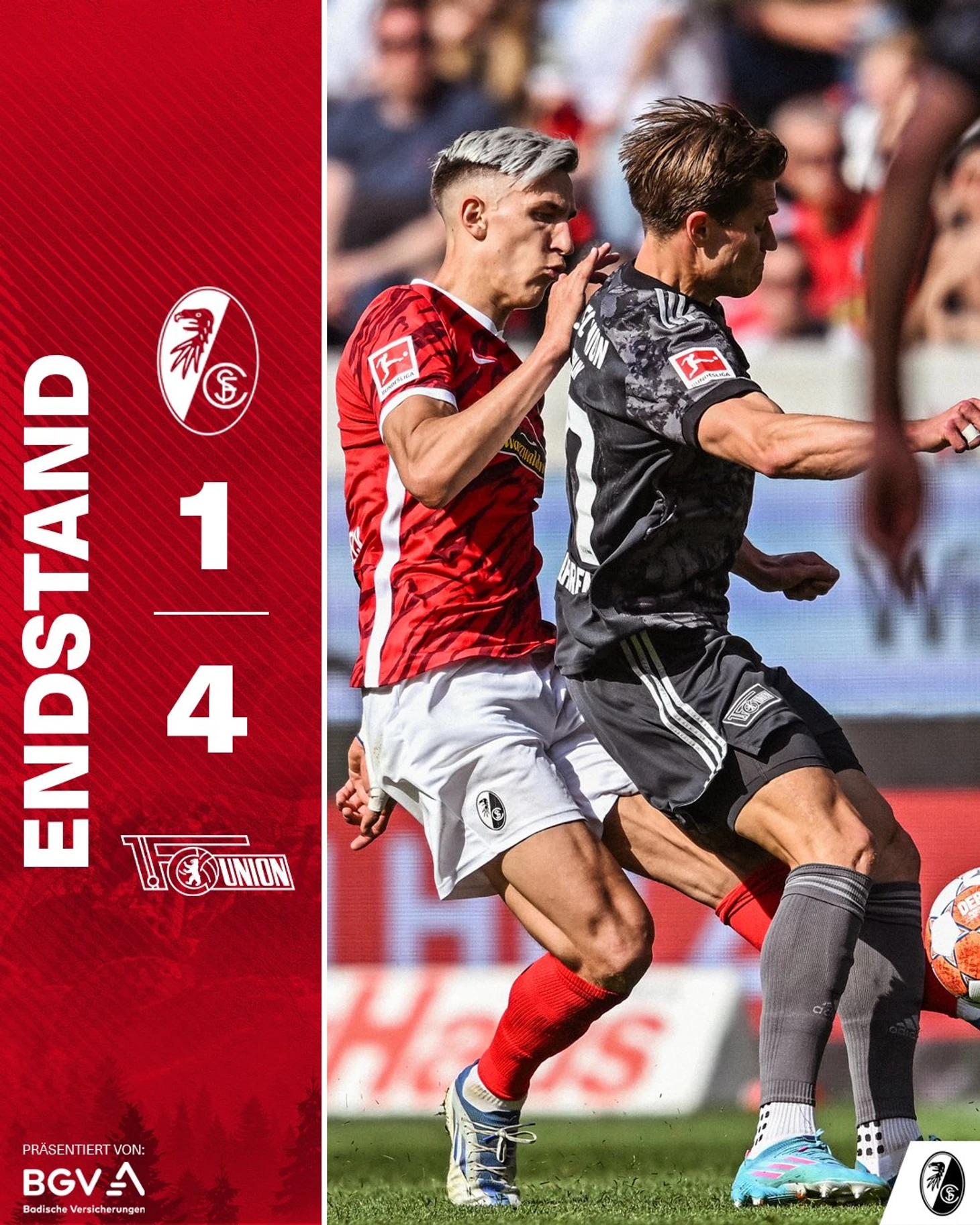 В этом матче во многом решалась судьба четвертой путевки для Германи в Лигу чемпионов на будущий сезон. Итог встречи оказался весьма неожиданным. «Фрайбург», который держал все в своих руках дома, уступил гостям из Берлина, причем с разгромным счетом. В итоге это стало подарком для «быков» из Лейпцига, которые поднялись на четвертое место.