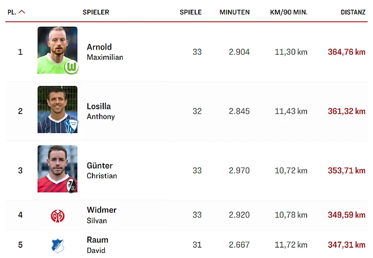 *игрок – кол-во игр – кол-во минут – в среднем км за 90 мин – всего км