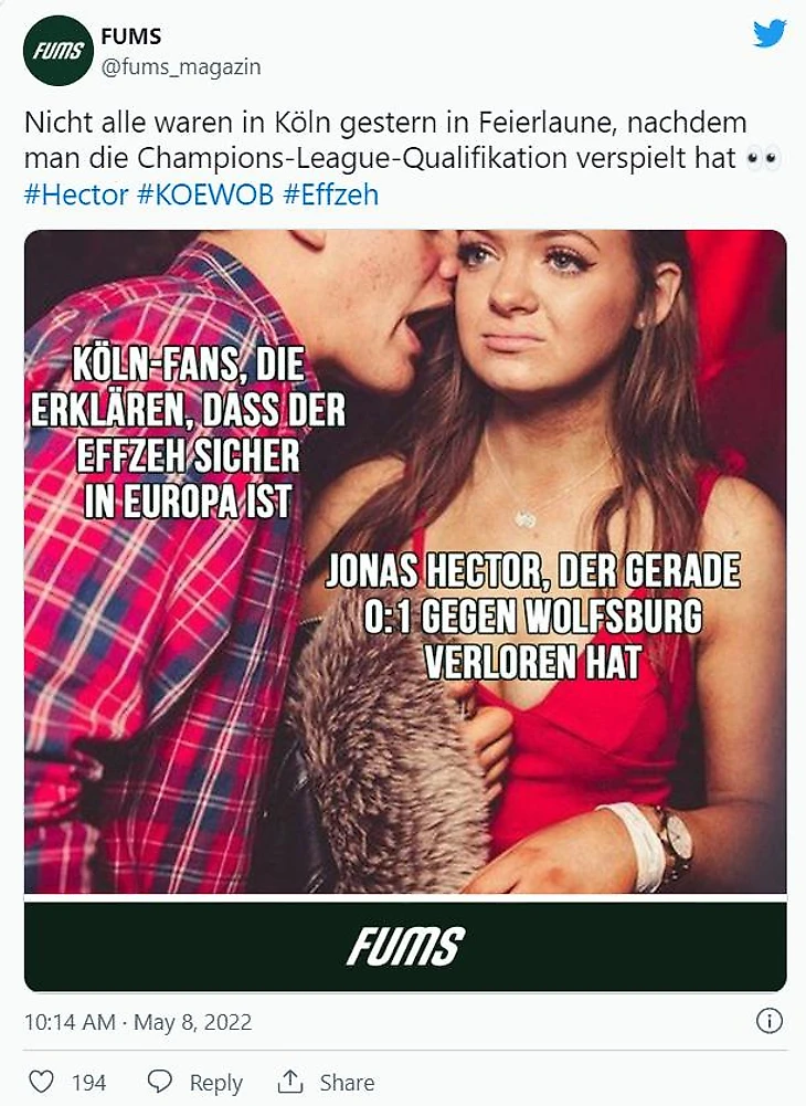В Кёльне на стадионе «Райн Энерги» придумали оригинальный вариант к призванию всех стран к миру. Центральный круг превратился благодаря дополнительным линиям в пацифистский знак, который является международным символом мира, разоружения, антивоенного и антиядерного движения. Что касается игры, то произошла неожиданность. «Кёльн», который борется за попадание в зону еврокубков, уступил «Вольфсбургу». Причем, «козлы» доминировали на протяжении всего матча, но единственный мяч в этой встречи забили гости и праздновали победу. Игрок «волков» Янник Герхардт забил впервые в этом сезоне.