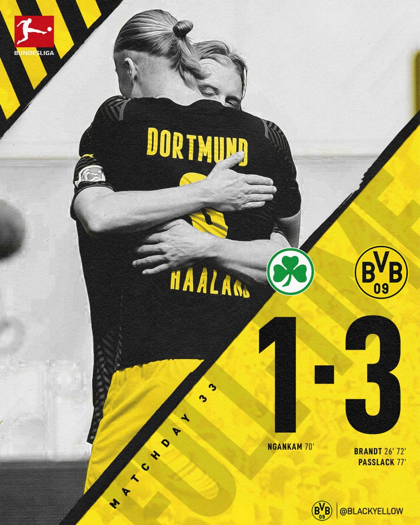 Фюрт наслаждался предпоследним матчем в Бундеслиге. «Гройтер» на протяжении всего чемпионата был полным аустайдером. Что касается «шмелей», то они приехали фиксировать уже официально свое второе место в чемпионате. Игра получилась академичной у клуба из Дортмунда и, забив в первом тайме, футболистам в желто-черной форме показалось, что дело сделано. Вот тут честолюбивые хозяева ненадолго смогли вернуть «Боруссию» с небес на землю отыграв один мяч. Увы, на большее «Гройтер» не хватило, клуб уступил, но порадовал все-таки свою торсиду упорной борьбой против одного из лидеров немецкого футбола.