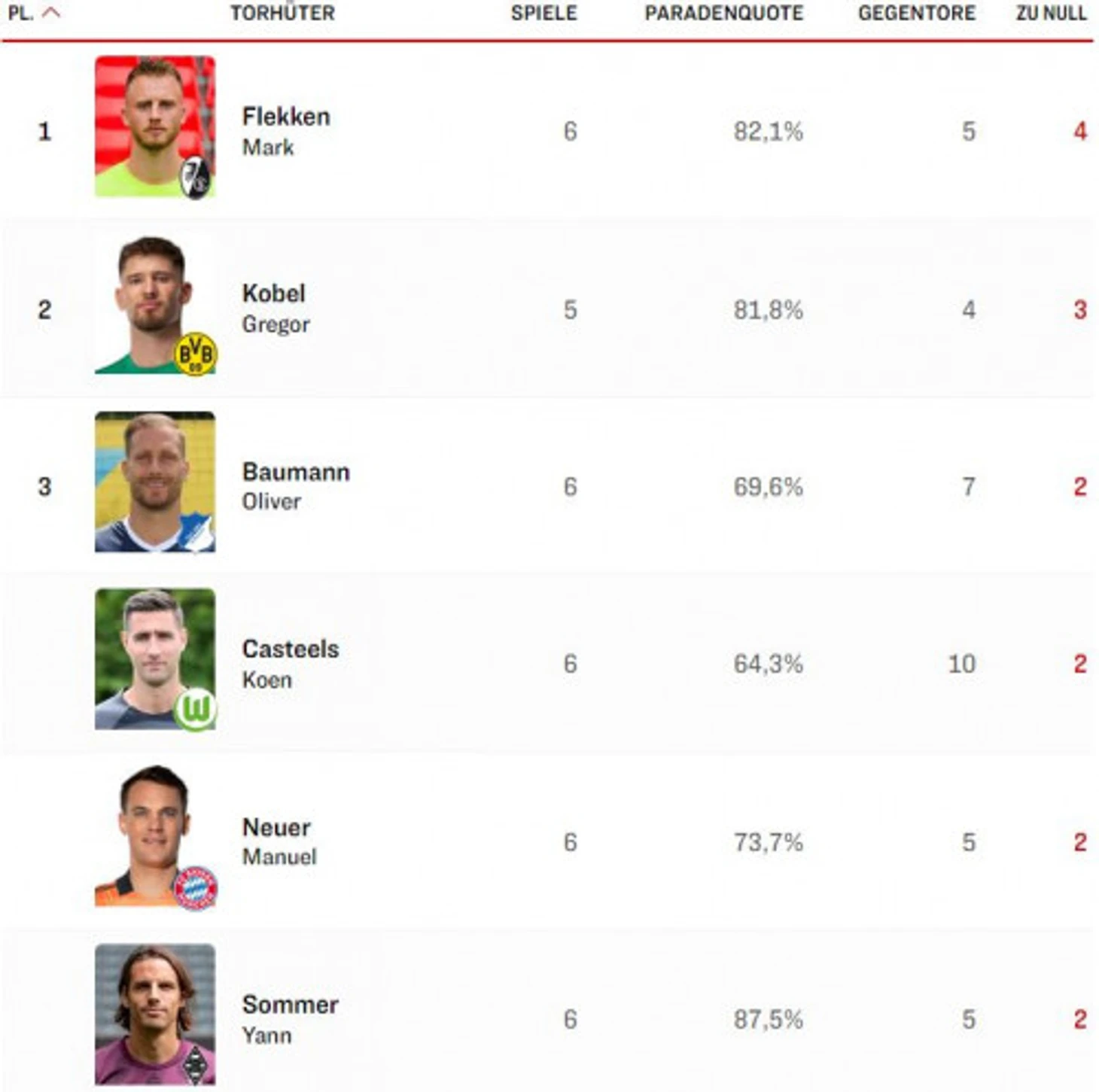 Ян Зоммер сделал 6 сейвов в матче с «Фрайбургом», Марк Флеккен – 5.