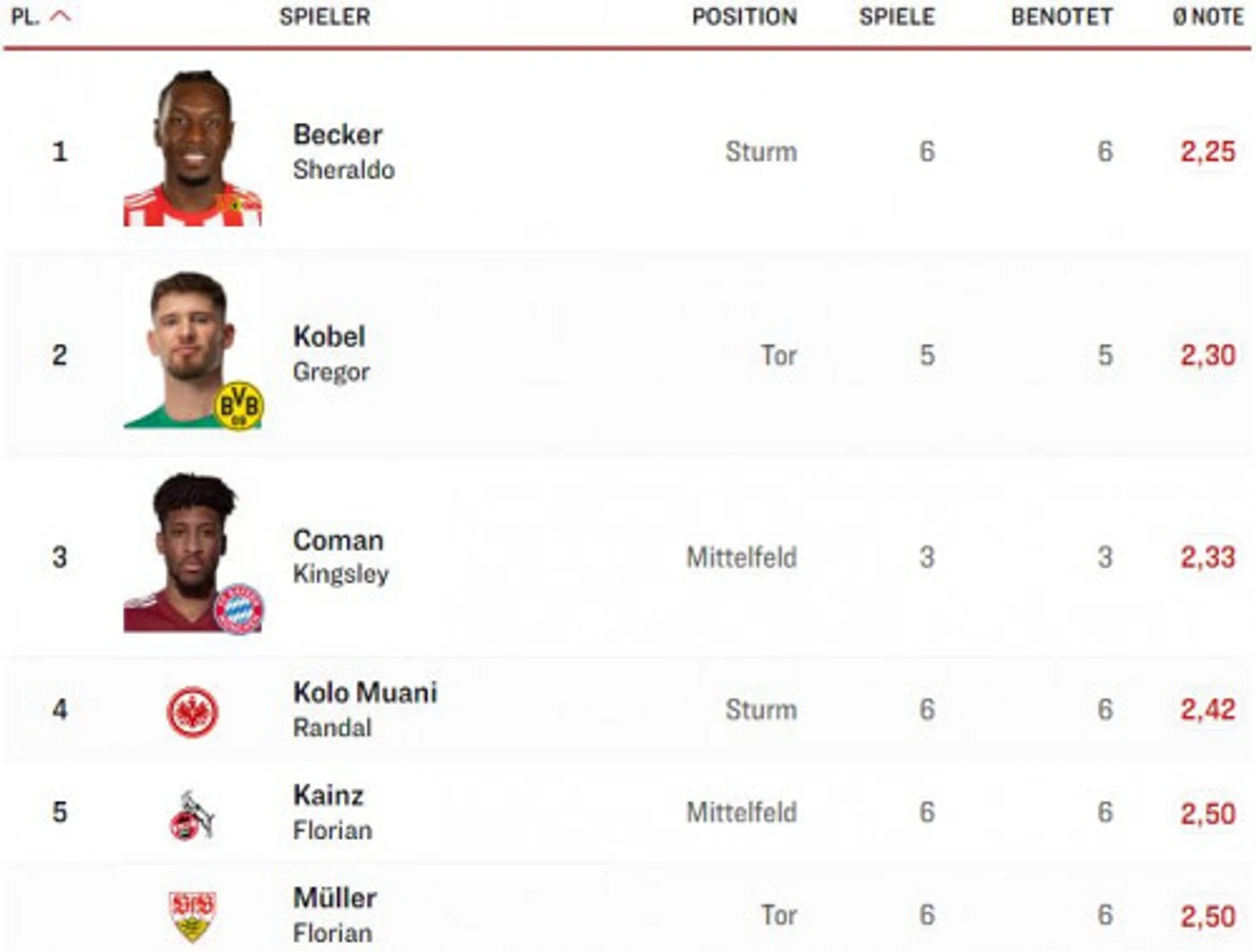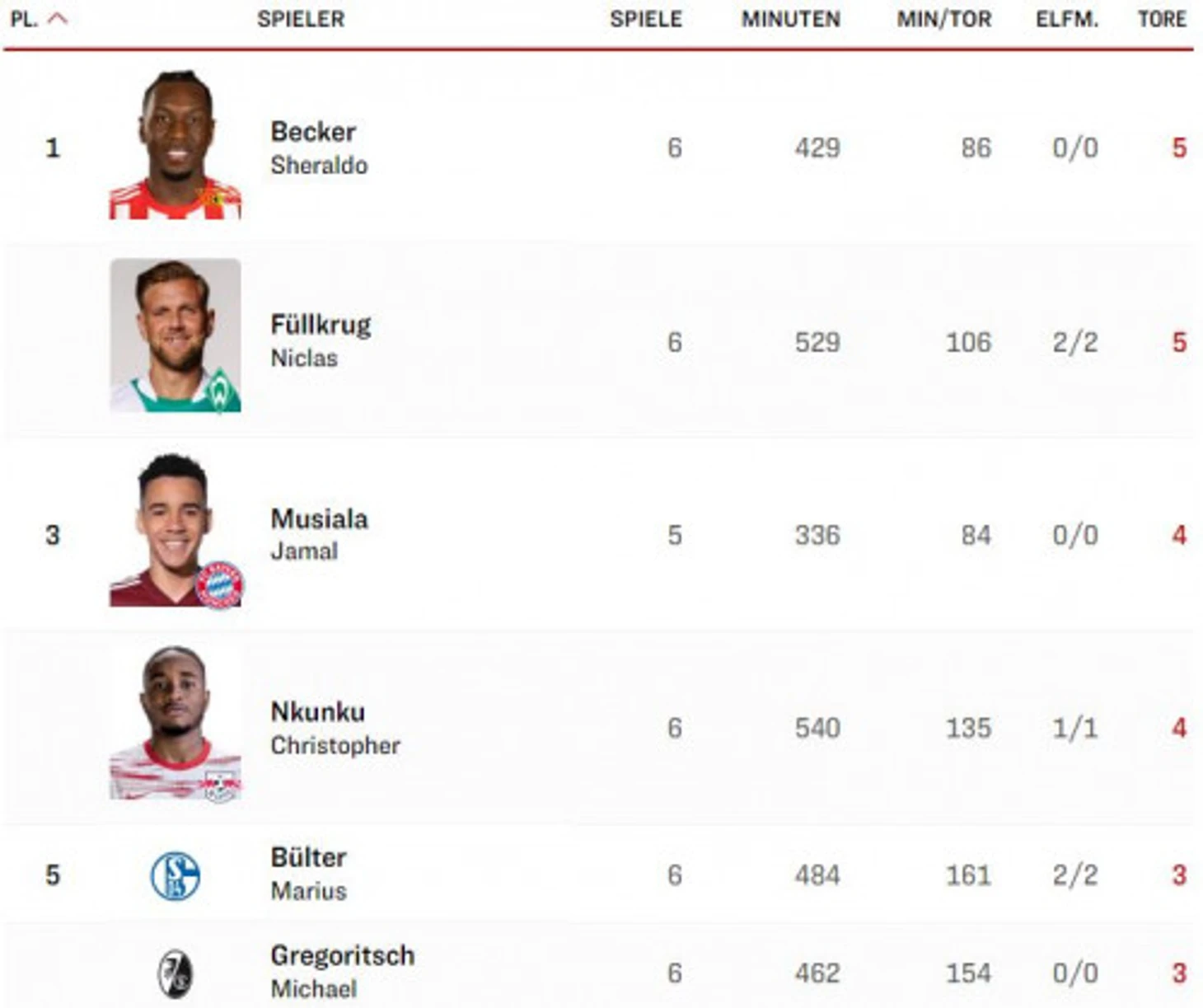 Мусиала на данный момент является лучшим бомбардиром «Баварии» с 4-мя голами.