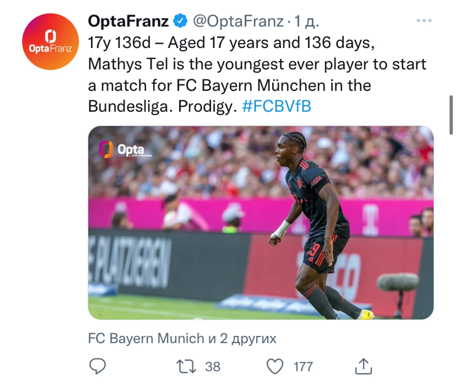 Тель забил свой второй гол за «Баварию» спустя две недели после первого забитого в Кубке Германии, который позволил ему стать самым молодым игроком «Баварии», отличившимся голом.