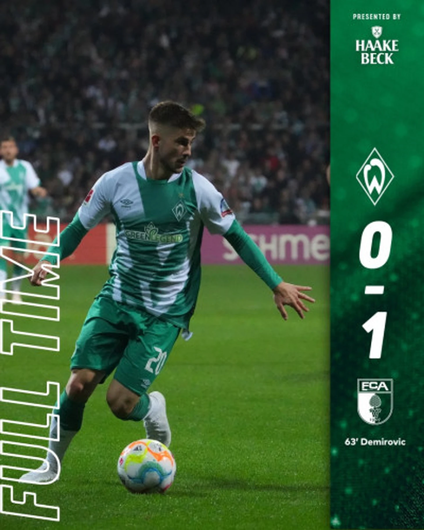 «Вердер» до матча с «Аугсбургом» забивал минимум дважды в каждом матче Бундеслиги.