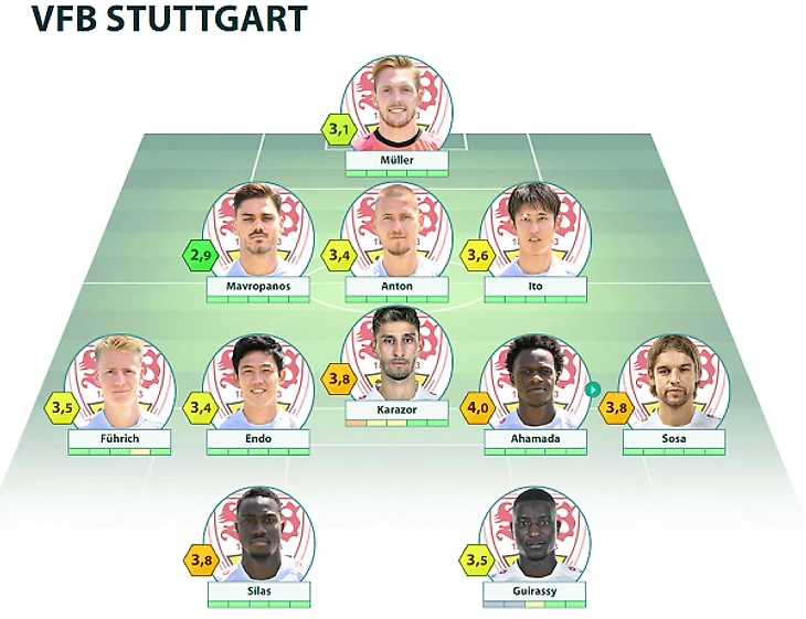 VFB: Müller - Mavropanos, Anton, Ito - Karazor - Führich, Endo, Ahamada, Sosa - Guirassy, Silas