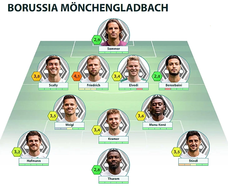 BMG: Sommer - Scally, Friedrich, Elvedi, Bensebaini - Weigl, Kone - Hofmann, Kramer, Stindl - Thuram