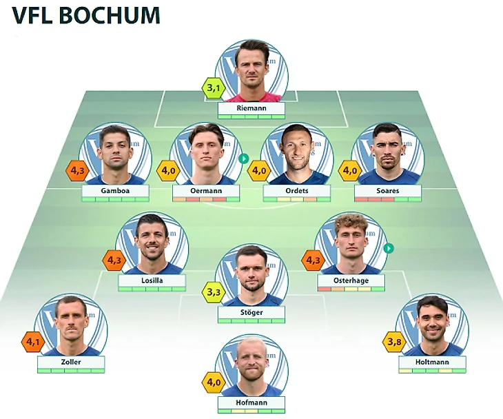 BOC: Riemann - Gamboa, Ordets, Oermann, Soares - Losilla, Osterhage - Zoller, Stöger, Holtmann - Hofmann