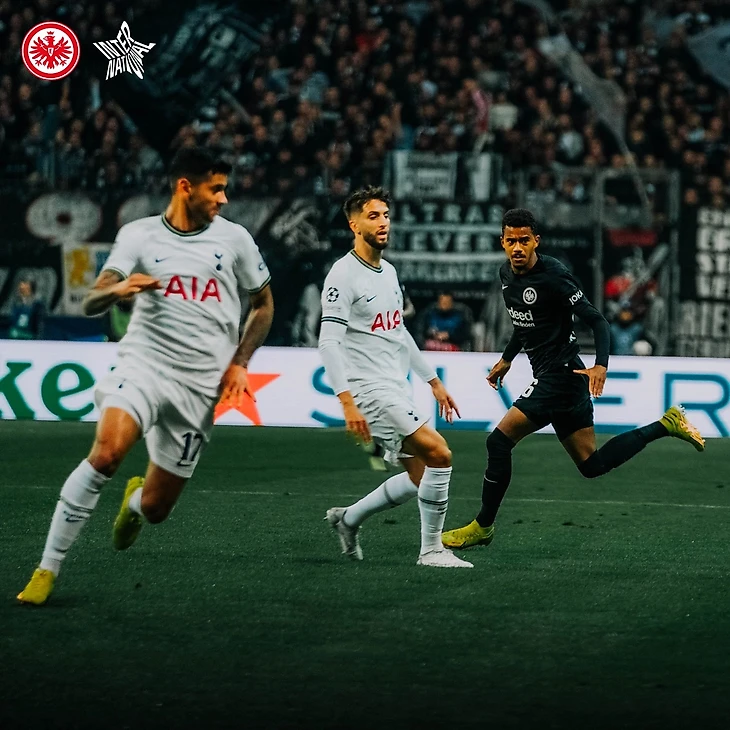 После первой победы «Айнрахта» в Лиге Чемпионов в прошлом туре, во Франкфурте 50 тысяч зрителей ожидали и первую домашнюю победу своих «орлов» в главном турнире Европы. Для достижения этой цели Гласнер выставил команду в привычной схеме 3-5-1. 38-летний ветеран Хасебе получил задание остановить Хари Кейна, а Роде и Соу должны были сдержать Сона и Ришарлисона. Кнауфф и Якич начали на флангах, а Коло Муани вновь вышел на острие нападения.