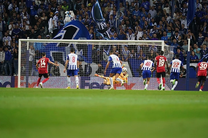 В конце первого тайма хозяева поля имели отличный шанс выйти вперед, но с ударом колумбийца Матеуса Урибе уверенно справился вратарь «Байера» Лукаш Градецки. Иранец Мехди Тереми, в следующей атаке открывыл счет, но мяч снова не засчитали. После просмотра момента со взятием ворот судейская бригада Энтони Тэйлора назначила пенальти в ворота хозяев за игру рукой в своей штрафной. Чех Патрик Шик исполнил пенальти не лучшим образом, и молодой португальский вратарь Диогу Кошта спас свою команду от пропущенного мяча. Так команды и ушли отдыхать. Во втором тайме территория и мяч окончательно перешли к хозяевам поля, и отличную атаку им удалось реализовать в середине второго тайма. Отличную передачу Мехди Тереми головой замкнул вышедший на замену нигериец Заиду Сануси. В этом сезоне чемпионата Португалии на его счету нет забитых мячей, но победный в Лиге чемпионов он на свой счет записал. В самом конце матча Мехди Тереми еще раз выдал очень хорошую передачу на своего партнера, после чего бразильцу Вендерсону Галено не составило больших проблем увеличить разницу в счете. Кстати, он тоже появился на поле по ходу второго тайма.
