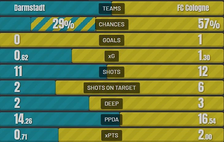 У «Дармштадта» худшая защита в лиге - 34 пропущенных гола. У «Кельна», напротив, худшая атака - десять забитых голов.
