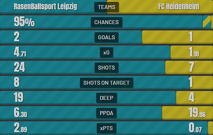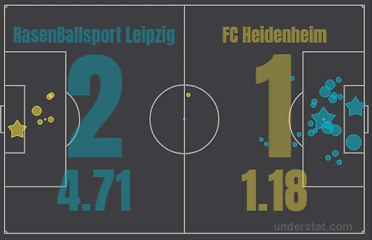 На удивление бодрый матч выдали «РБ Лейпциг» и «Хайденхайм». Кто бы так сказал в начале матча между командой из топ-5 и командой немногим выше «зоны невозврата» турнирной таблицы.