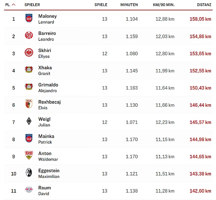 *игрок – кол-во игр – кол-во минут – в среднем км за 90 мин – всего км