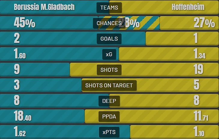 Гладбах понемногу подбирается к борьбе за попадание в еврокубки в следующем сезоне, а вот команда Матараццо наоборот теряет важнейшие в этой борьбе баллы.