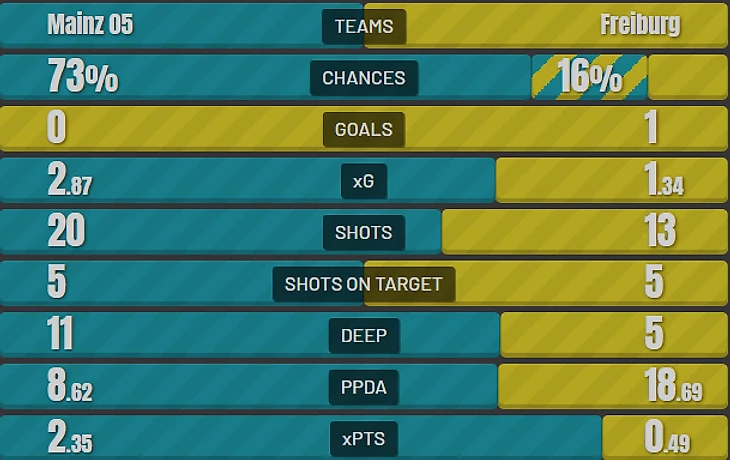 Нелогичный результат не соответствующий статистике и ходу встречи, но результат на табло 0:1. «Фрайбург» за неделю одерживает две важнейшие победы – в Лиге Европы и Бундеслиге, а «Майнцу» не удается выбраться из зоны вылета.