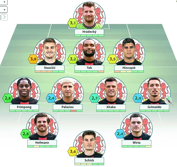 «Байер»: Градецки – Станишич, Та, Инкапиэ – Фримпонг, Паласиос, Джака, Гримальдо – Хофманн, Вирц – Шик