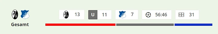 «Фрайбург» ― криптонит «Хоффенхайма». Последняя победа «деревенских» в этом противостоянии состоялась в декабре 2021 года. На счету «Хоффенхайма» ― четыре победы и одна ничья в пяти последних встречах команд.