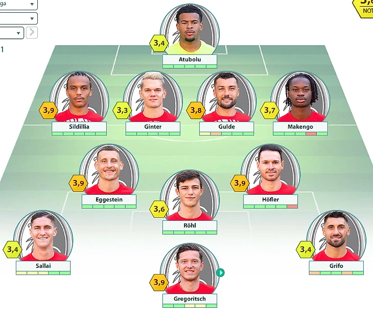 Возможные потери (здесь и далее – версия Bundesliga.com – выбыл (под сомнением)): Доан, Гюнтер, Кьере, Шмидт (нет) – Бериша, Гайгер, Йон, Премель, Самассеку (Конте)
