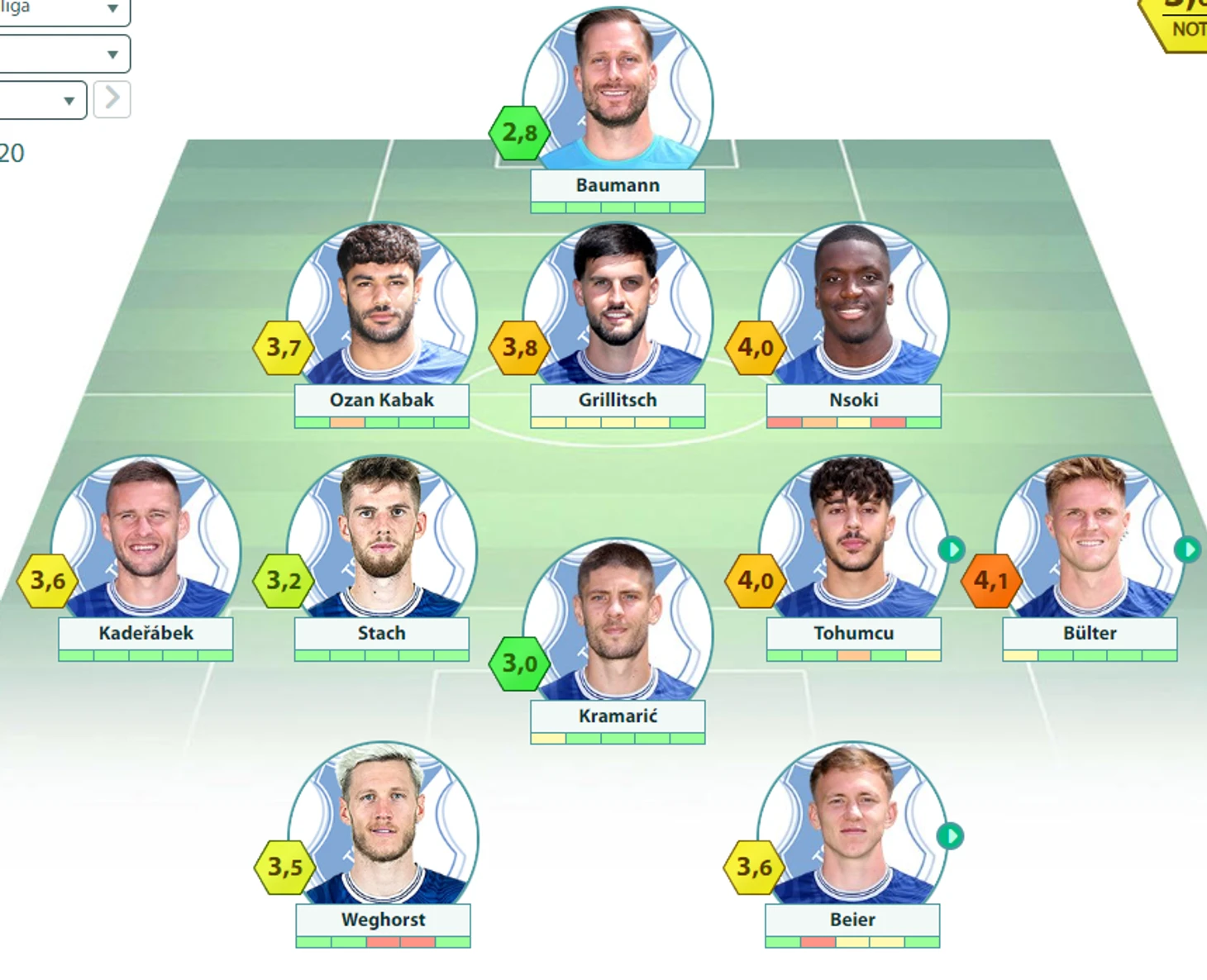 Ориентировочные составы (здесь и далее – версия Bundesliga.com – текст, версия LigaInsider.de – скрин):