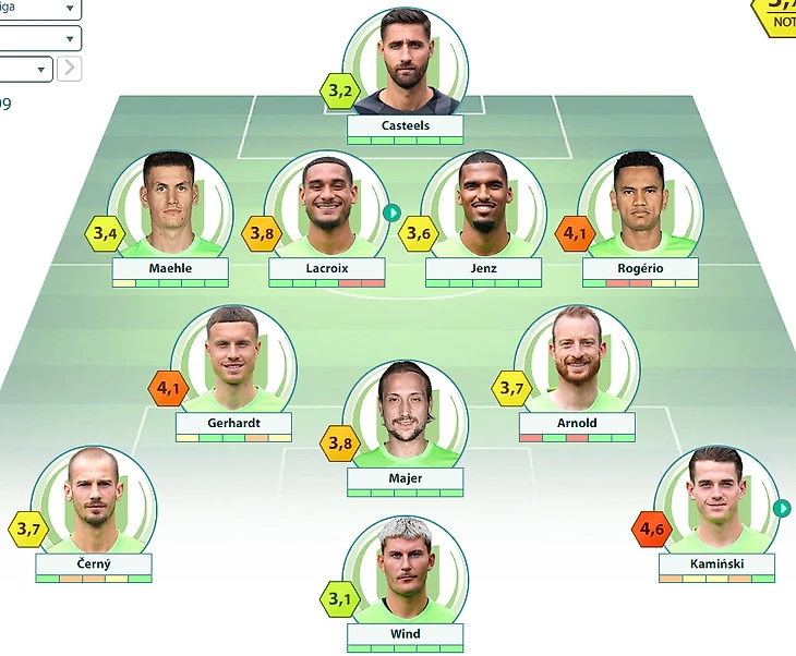 «Вольфсбург»: Кастельс – Мэле, Борнаув, Йенц, Рожерио – Герхардт, Арнольд – Черны, Маер, Каминьски – Винд