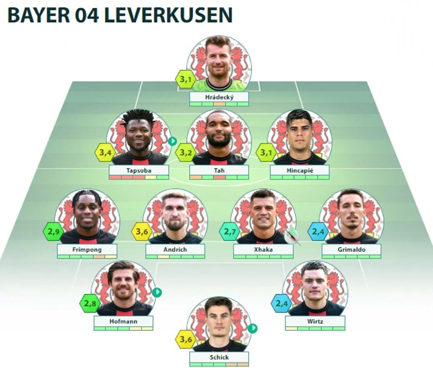 «Байер»: Градецки (c) – Тапсоба, Та, Инкапиэ – Фримпонг, Джака, Андрих, Гримальдо – Хофманн, Виртц – Иглесиас