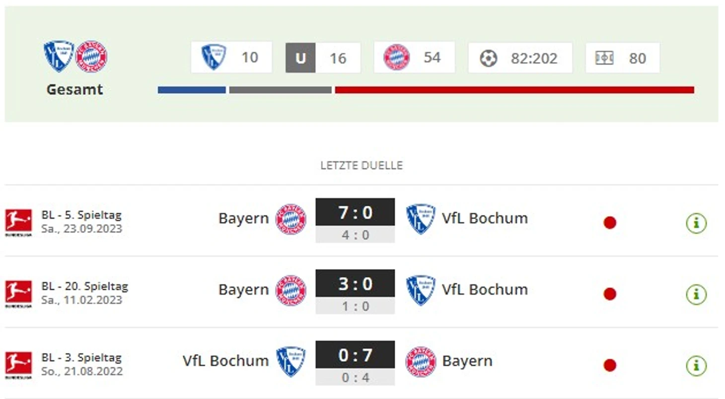 «Бавария» выиграла три последних матча против «Бохума» со общим в сумме счетом 17:0. В первом круге мюнхенцы выиграли со счетом 7:0.