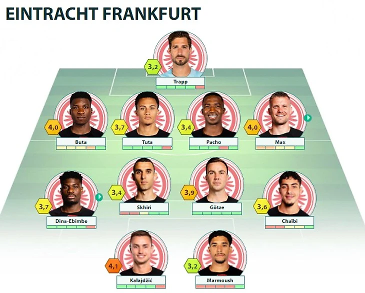 «Айнтрахт»: Трапп (c) – Тута, Смолчич, Пачо –Бута, Гетце, Схири, Нкунку – Мармуш, Шаиби – Калайджич