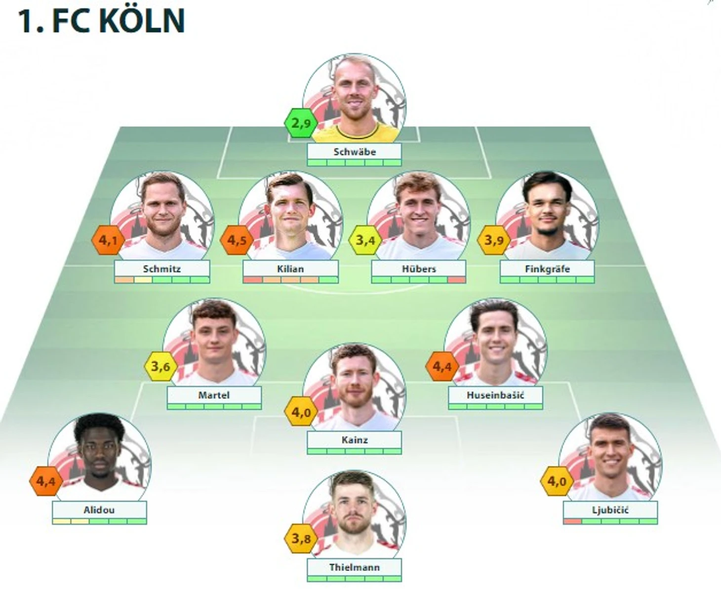 «Кельн»: Швэбе – Шмитц, Килиан, Хюберс, Финкгрефе – Мартель, Хусейнбашич – Алиду, Кайнц (c), Любичич – Тильманн