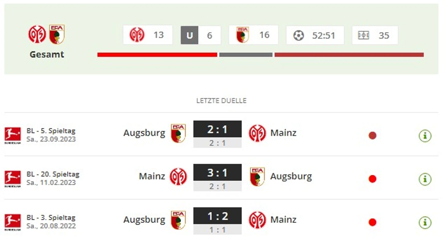 На данный момент, согласно статистике, «Аугсбург» не обыгрывал никакой другой клуб чаще, чем «Майнц» – 12 побед.