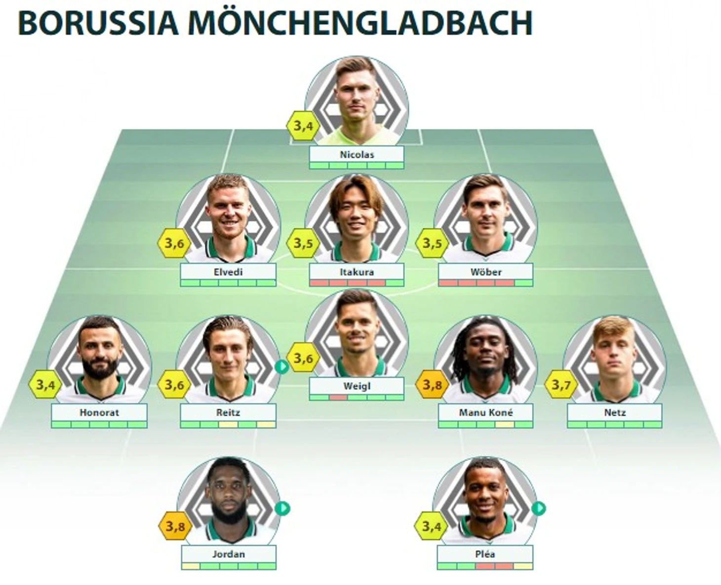 «Боруссия» Менхенгладбах: Николас – Эльведи, Итакура, Фебер – Онора, Райтц, Вайгль (c), Коне, Нетц –Джордан, Плеа