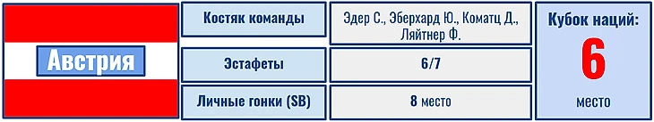 Продолжает сдавать Юлиан Эберхард. Но это объяснимо, ему все-таки уже 34 года. Но зная о долголетии австрийских биатлетов, можно с уверенностью предположить, что Юлиан еще не спел свою заключительную партию.