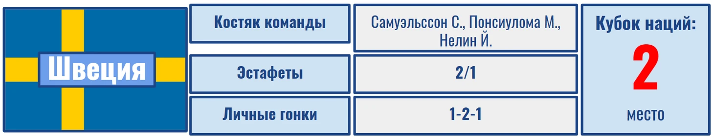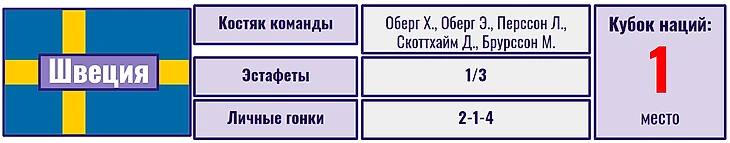 По итогам четырех этапов лидером кубка наций является сборная Швеции. Конечно, если бы они шли вторыми, это было бы более ожидаемо. Но учитывая нестабильность норвежских прим, и держа в уме, что шведки как раз славятся ровным составом, первая строчка не кажется такой уж удивительной.