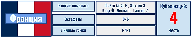 Женская сборная Франции - странный предмет. В личных гонках она скорее разочаровывает. А в эстафетах наоборот оставляет приятное впечатление.