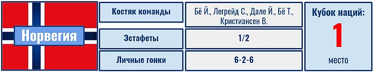 Мне кажется, если сборная Норвегии выставит в эстафете полностью второй состав, он все равно не затеряется и спокойно будет претендовать на медали.