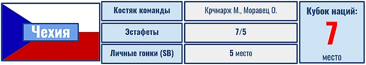 Уже какой сезон подряд на одном месте топчется Михал Крчмарж. Пару лет назад казалось, что чех - будущий представитель ТОП-10 общего зачета. Но ему уже почти 30, а ожидаемого прогресса так и нет. Из положительного можно отметить заметно улучшившуюся стрельбу и отлично проведенные эстафеты.