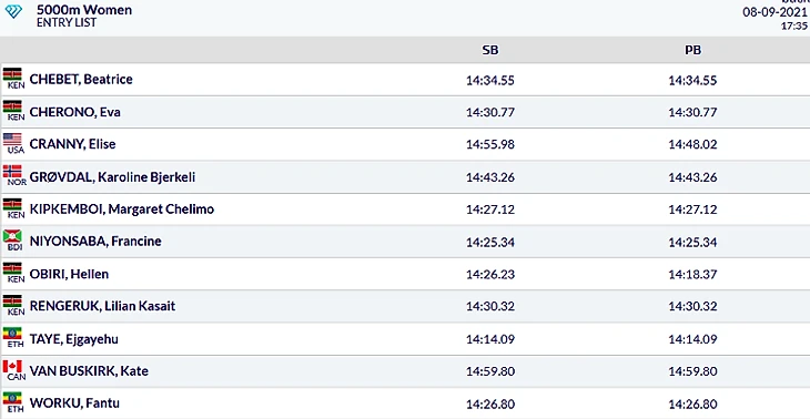 Что интересно, победительница ОИ на 5000 м Сифан Хассан, как и мировая рекордсменка Летесенбет Гидей, даже не бегали в этом сезоне 3000/5000 в зачет БЛ.